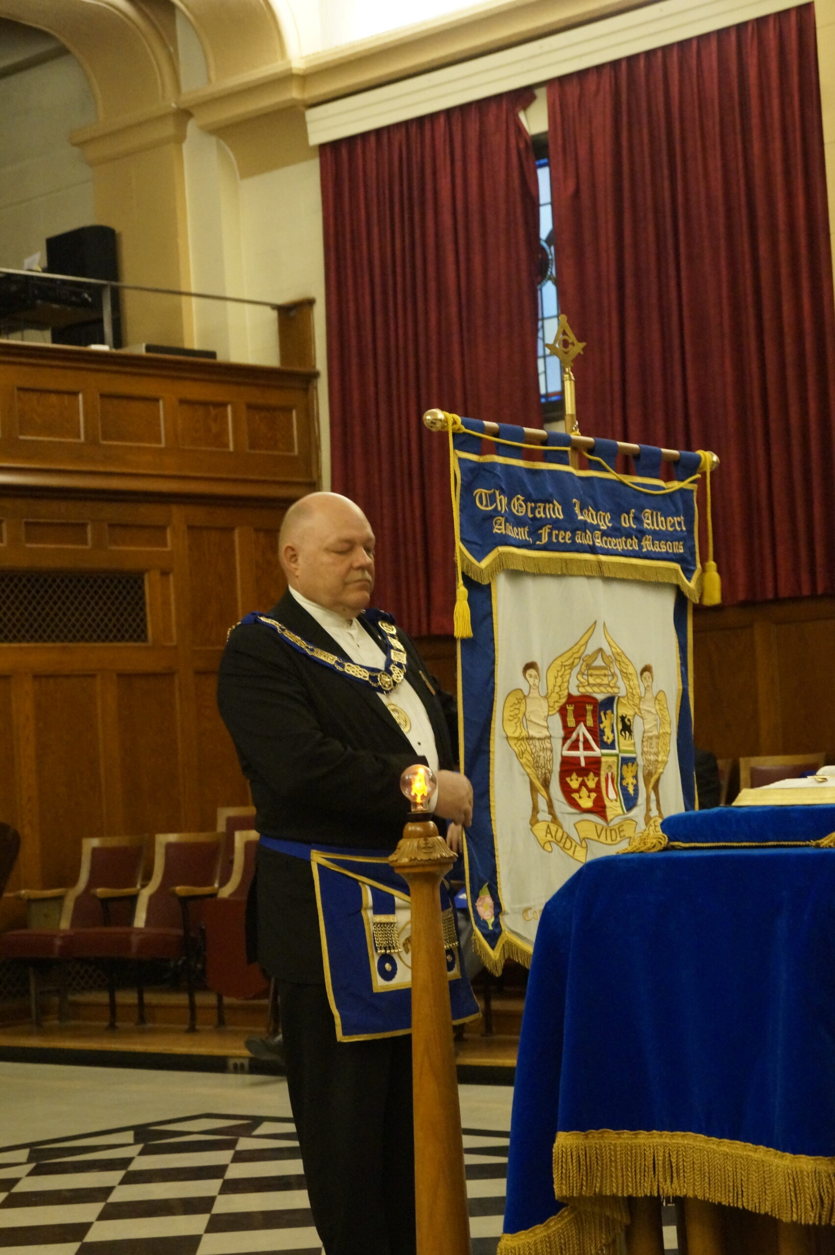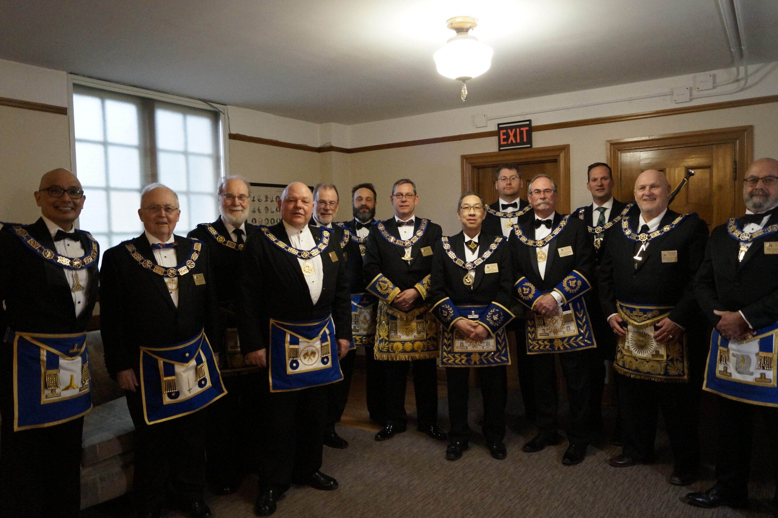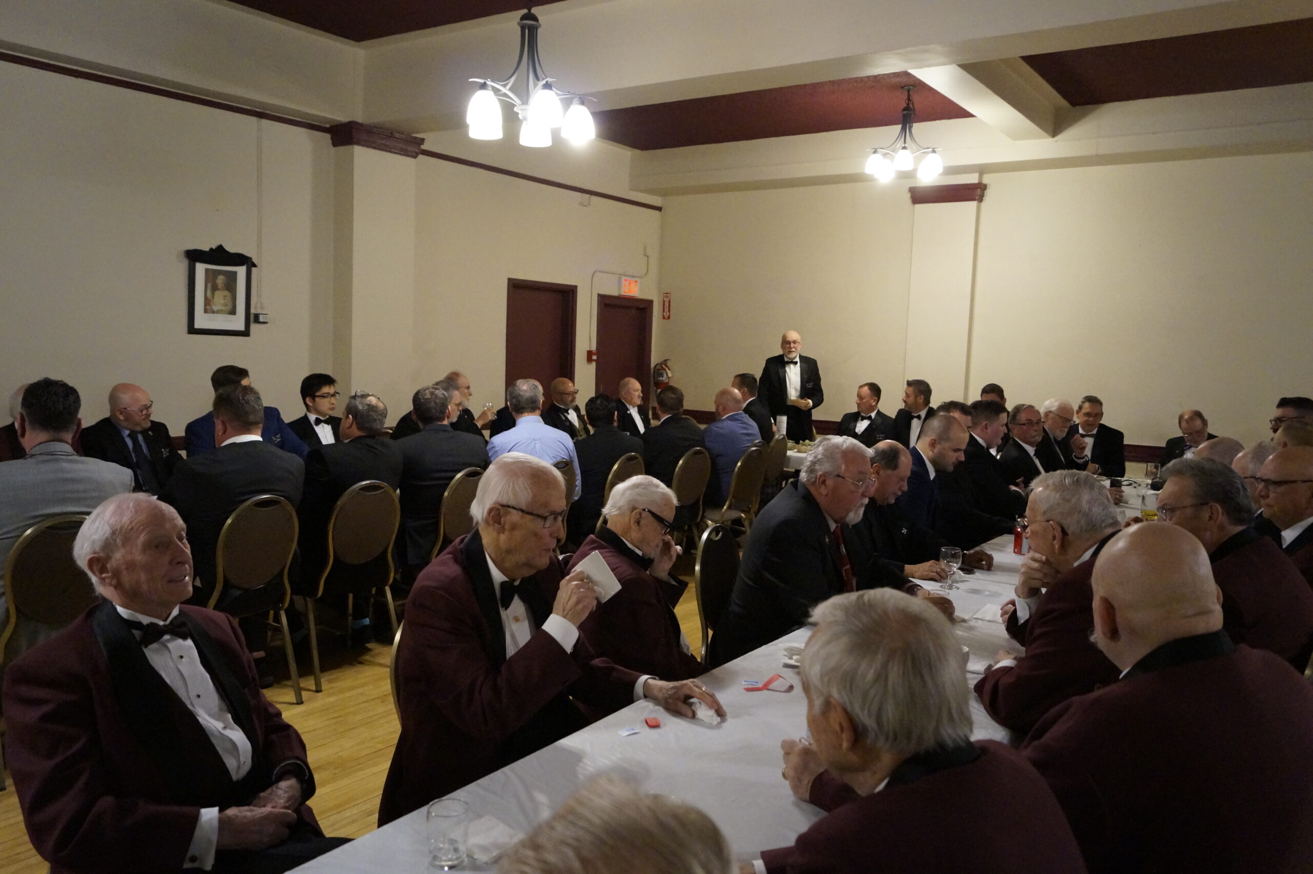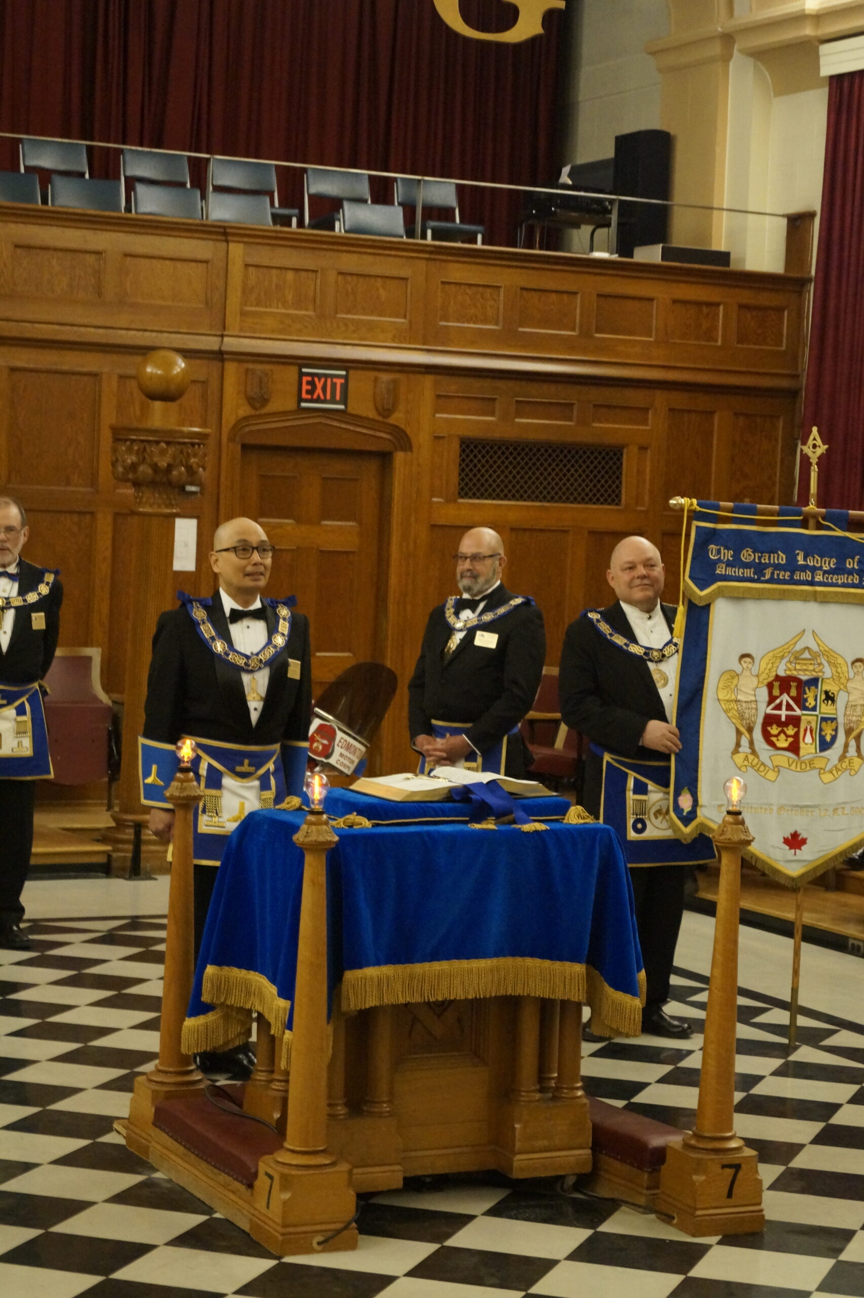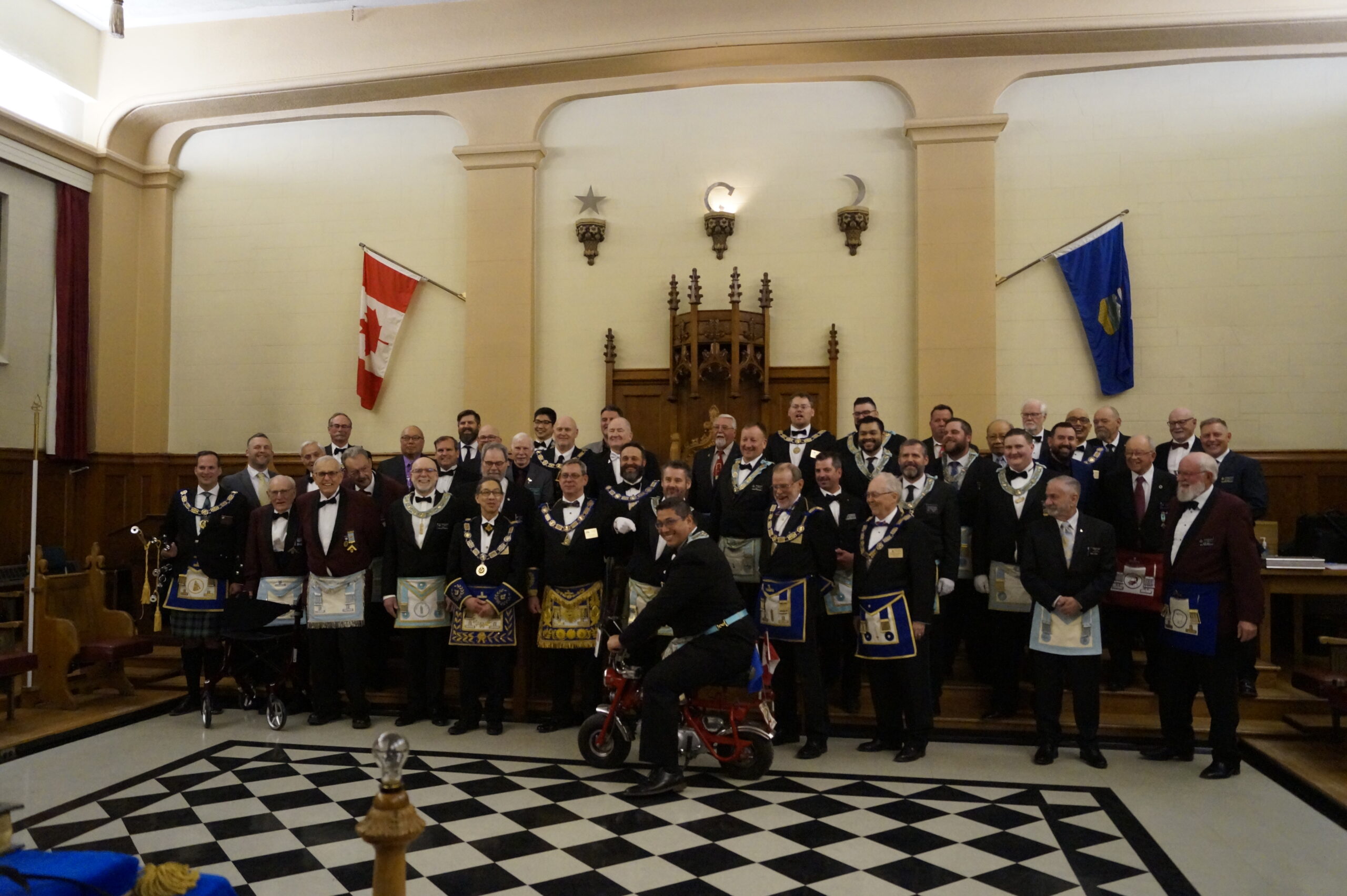 Photos 2023 50 Year Pin to Ray Nyroos, 60 Year Bar to Larry Heron, and PM Certificate to Trever Urchyshyn Chinookarch District Meeting October 2023
